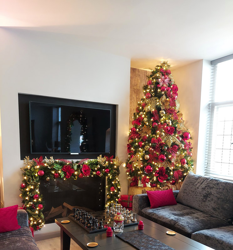Yes, all our residential decorating is bespoke to your style. In your consultation, we’ll explore ideas, share past designs, and create a scheme that complements your home. From classic red and gold to unique themes, we help you achieve a festive look that wows family, friends, and neighbours.